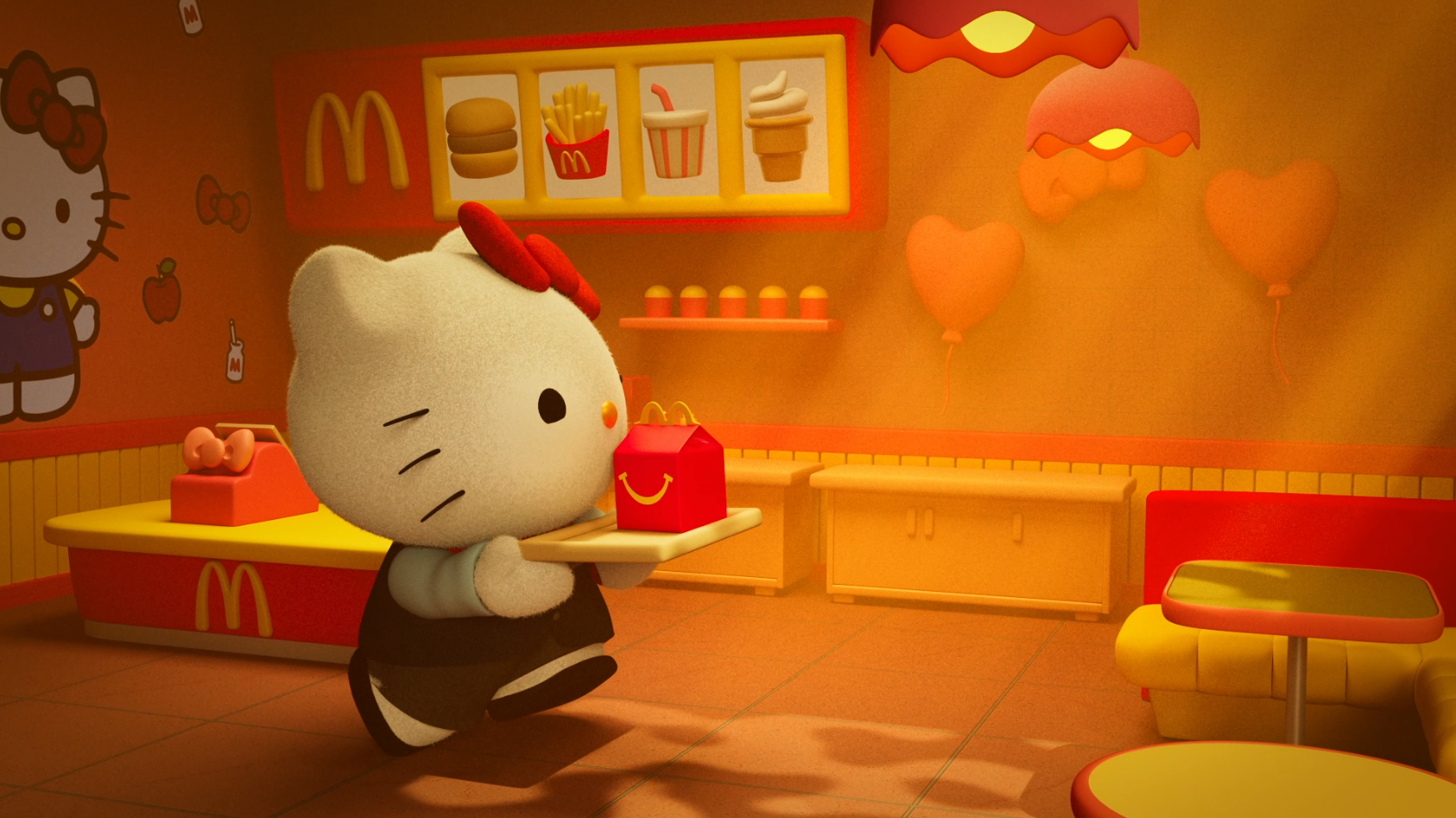 Neste filme da Hello Kitty eu fiz para Produka Filmes, cordenação de produção de animação, composição e pós produção. Também fiz alguns modelos e texturas, iluminação, shader, pelos, composição do 3d, motion design.